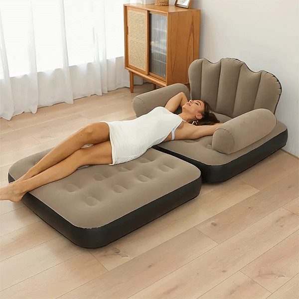 Дали ви недостасува простор за дополнителни седишта или кревет за гости? Ви ја претставуваме 🛋️ AirLounge – 5 ВО 1 ВОЗДУШНА ЕДНОСЕД СОФА – вашето идеално решение за секоја пригода! Оваа иновативна софа нуди неверојатна флексибилност, трансформирајќи се од удобно седиште до комфорен кревет за неколку минути.