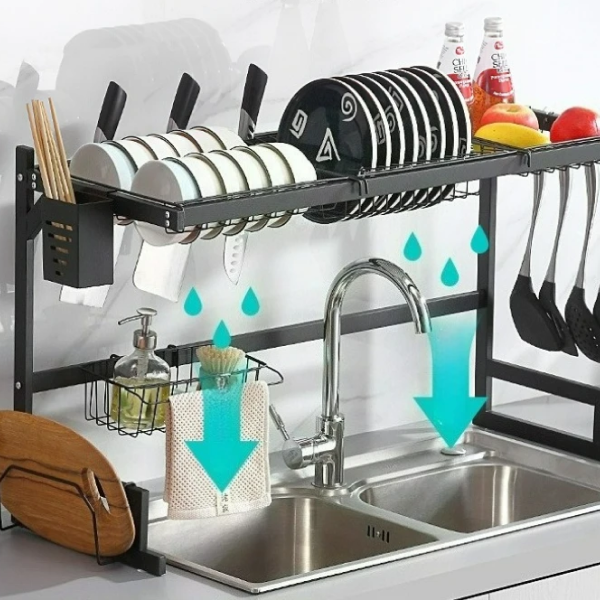 🍽️ DishMaster – КУЈНСКИ ДРЖАЧ ЗА САДОВИ И ПРИБОР✨ Организација над мијалникот: Мултифункционален држач за садови, чинии, прибор за јадење, ножеви и даски за сечење, кој штеди простор!