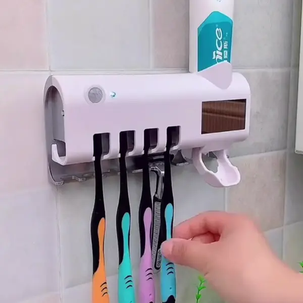 Со CleanSmile, добивате комбиниран уред кој решава два проблеми. УВ Стерилизаторот користи моќна UV-C светлина за да ги уништи бактериите и микроорганизмите кои се собираат на влакната на четките, обезбедувајќи дека секој пат кога ќе ја користите, таа е чиста и хигиенска. Диспензерот за паста ви овозможува автоматско и прецизно дозирање на пастата директно на четката со едно притискање, што спречува отпад и го елиминира нередот од тубичките. Уредот обично има држачи за повеќе четки и се монтира на ѕид со лепак или вакуум, без дупчење.