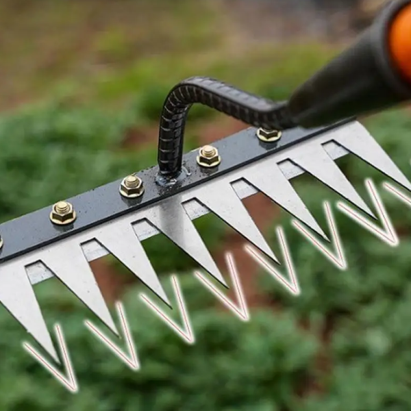 ✔️ Мултифункционалност – Одлична за олабавување, рамнење и собирање на отпадоци од дворот.