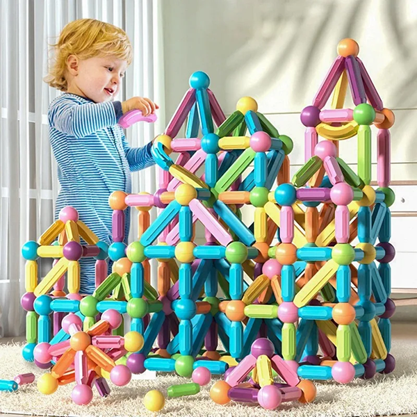 Силни Магнети: Секој дел содржи моќни магнети кои овозможуваат стабилно градење на високи објекти без тие да се урнат лесно.