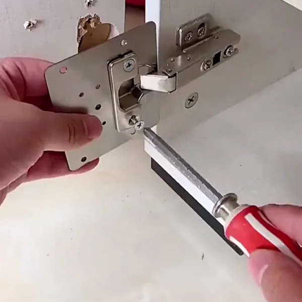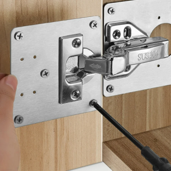 🛠️ HingeFix – МЕТАЛНА ПЛОЧА ЗА ПОПРАВКА НА ШАРКИ✨ Трајно решение: Висококвалитетна плоча која ги зајакнува оштетените точки на вашиот мебел, овозможувајќи им на шарките да стојат цврсто засекогаш!