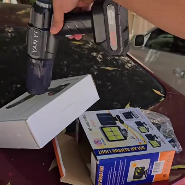 🔋 TurboClean – ПРЕНОСНА ПРAВОСМУКАЛКА СО ЛИТИУМСКА БАТЕРИЈА✨ Двојна моќ: Напредна безжична технологија која истовремено вшмукува и издувува, за совршена чистота во секој агол на вашиот автомобил и дом!
