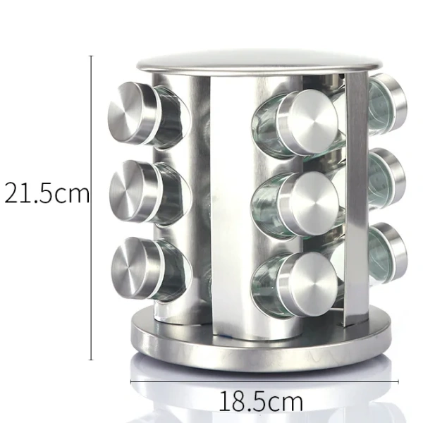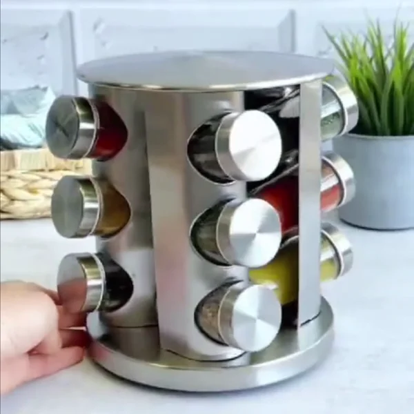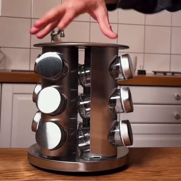 Сталажата може да биде ротирачка (во зависност од моделот), што овозможува лесен пристап до секое шишенце. Овој сет помага да ја одржите работата површина чиста и да го подобрите процесот на готвење со брзо наоѓање на вистинскиот зачин.